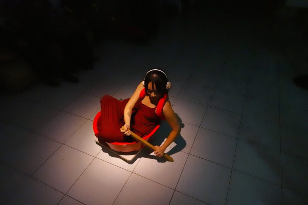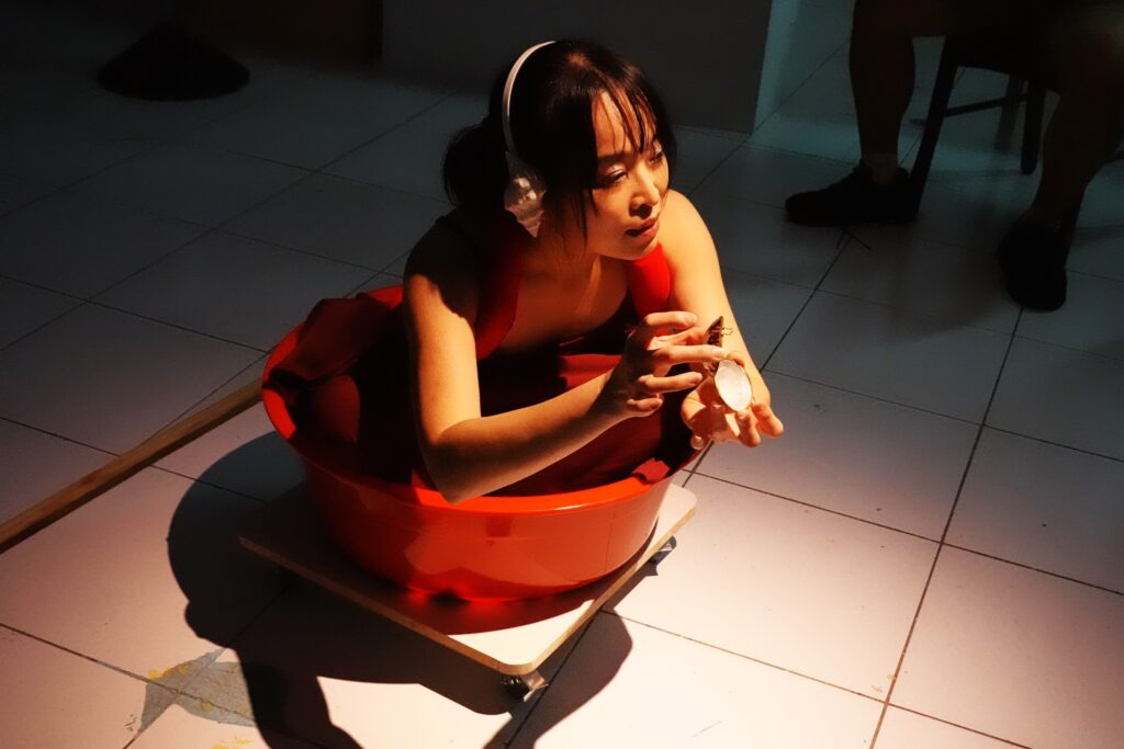 This work was created for the “Voice of Rolling Tides” contemporary video and new media art exhibition in Taiwan, after exhibiting in Spain. It reflects on the complexities of ethnic identity, concepts of nationhood, and the conflict between Spain and Catalonia, Taiwan and China, through the deconstruction and reconstruction of symbols. I recall the first time I began to understand the meaning of countries and passports: over ten years ago, I witnessed refugees on Tonle Sap Lake in Cambodia, leaving an indelible impression. These refugees, exiled since the Vietnam War, have lived for generations on the water, without land or nationality. Beyond fishing, they survive by entertaining tourists or begging. Many very young children paddle small vessels alone, displaying amphibious creatures in the lake for tourists to photograph. I will never forget the snake on one child’s shoulders, which seemed to serve as his only life vest while drifting on the vast waters. Compared to people with nations, his situation appeared closer to the snakes, turtles, and crocodiles of the lake. This performance is an attempt to make the conditions of refugees visible.